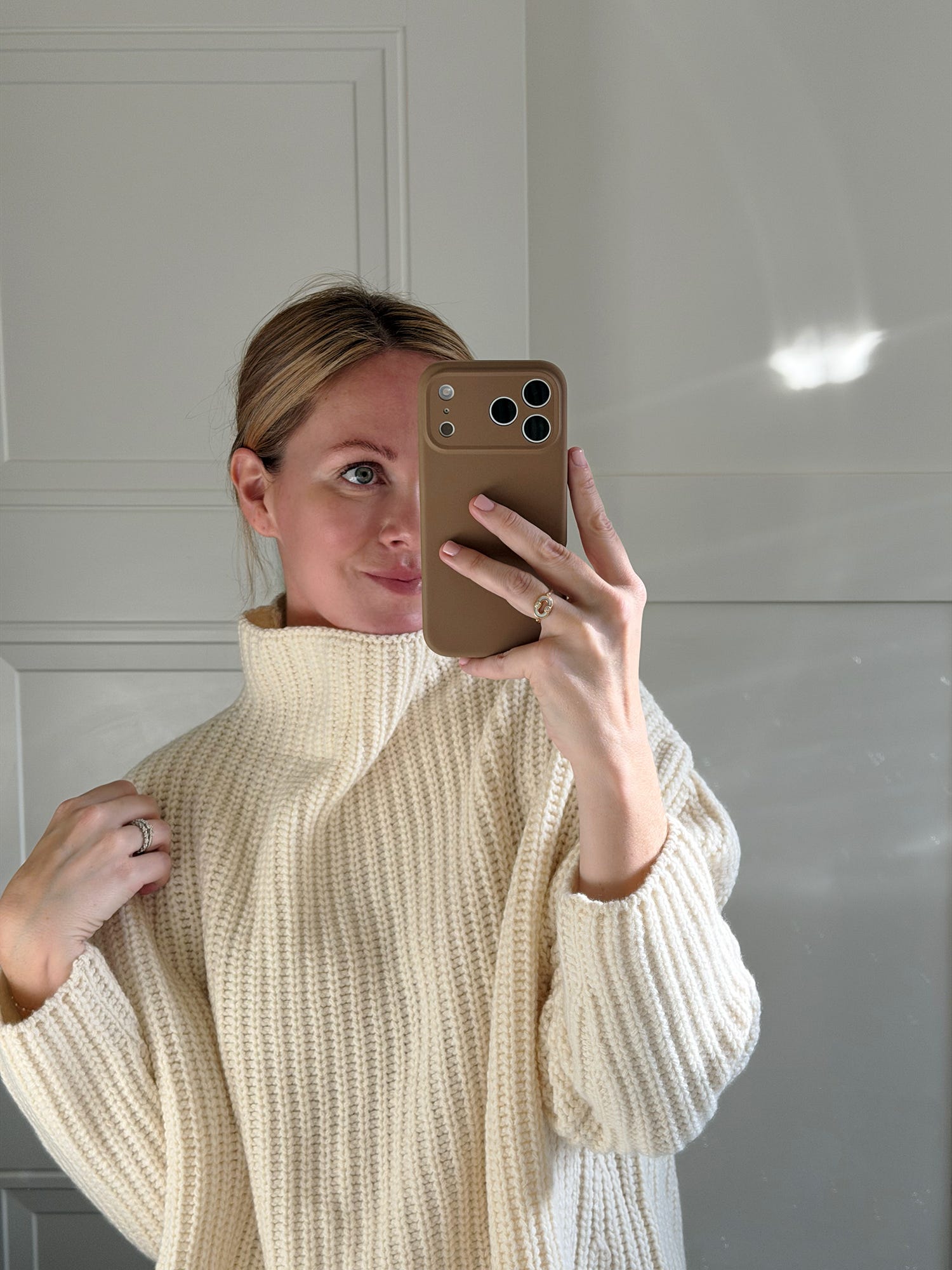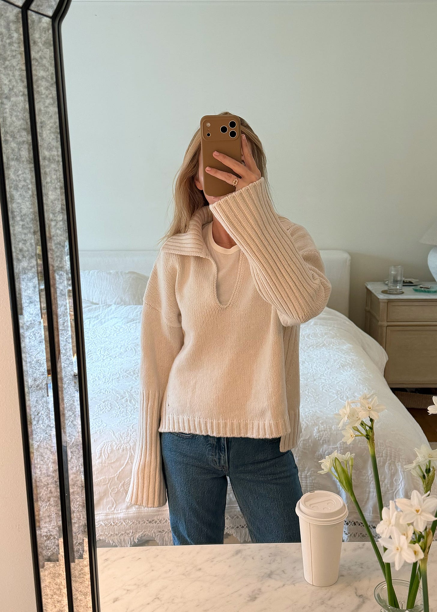 I’ve actually had this one for awhile and adore it. The weave is incredible — thick and lush without being too bulky — and it’s the most exquisite ivory hue. One of my most favored cream knits, which says a lot as you may know. :)