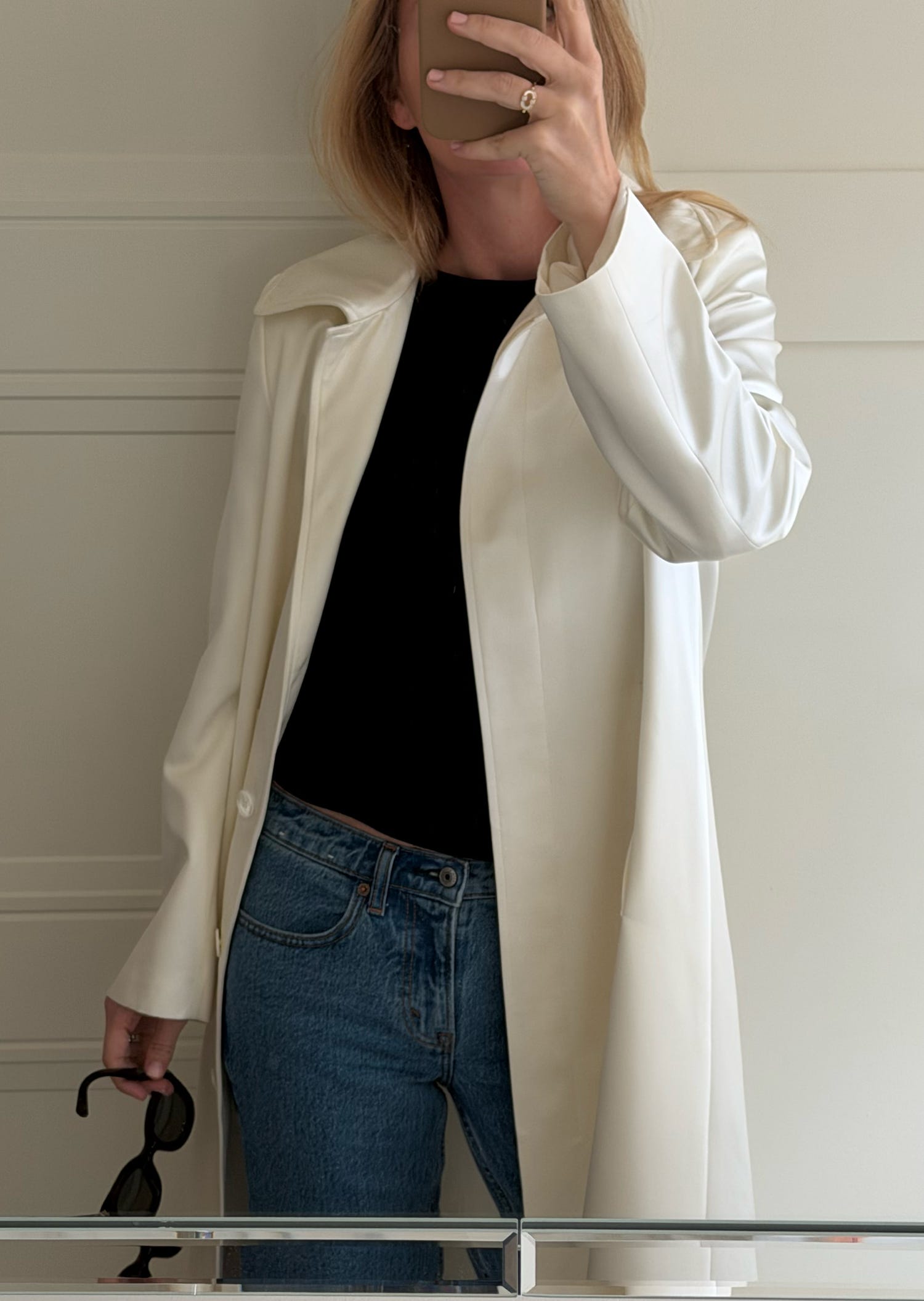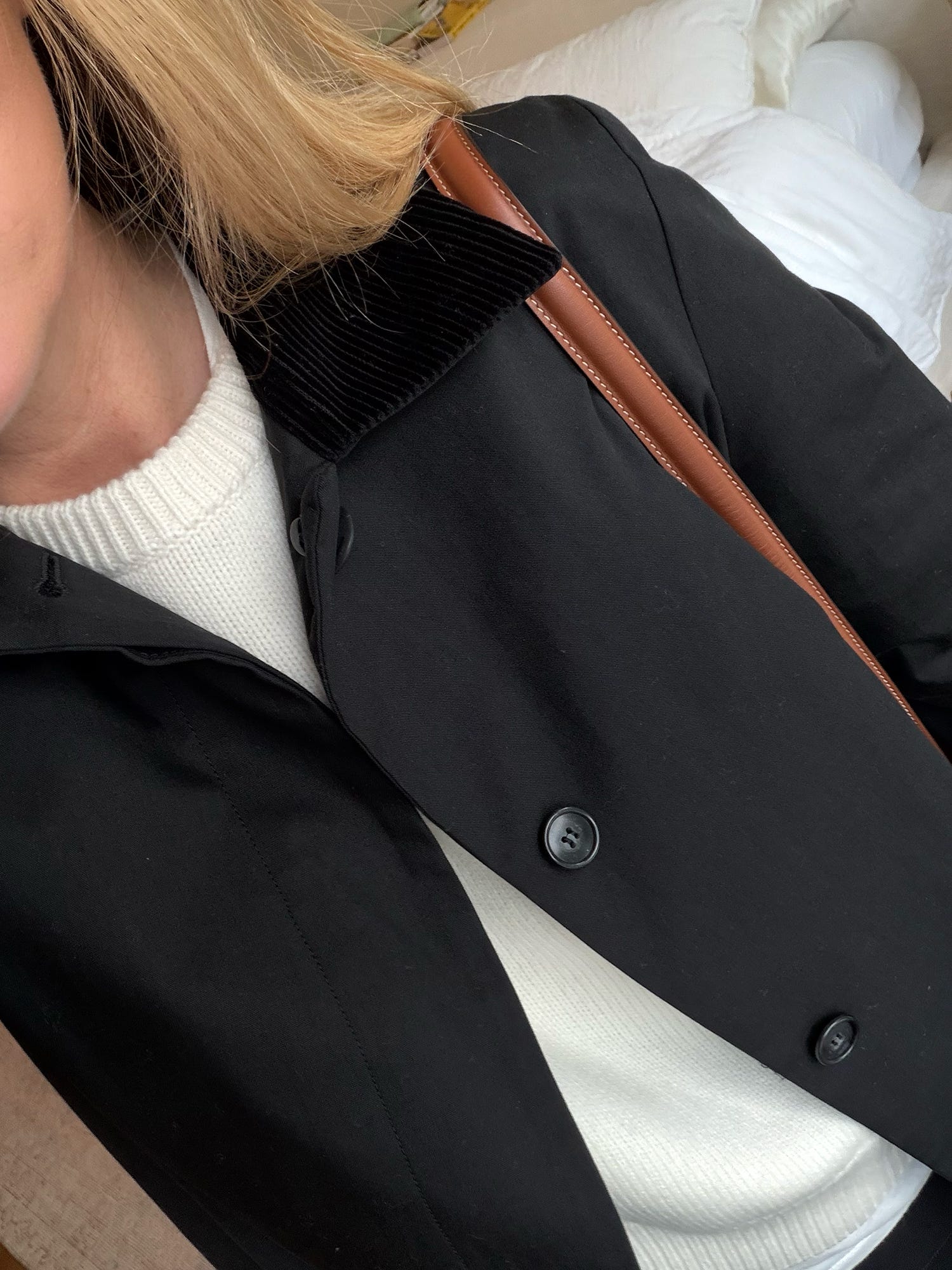 I’d been dreaming about a black trench but had yet to find the right one. Love this direction so much more! The corduroy collar is gorgeous. It’s sleek, and chic, and just the thing you want to put on over a simple jeans and tee to feel elegant and put together. My friend actually got this a bit ago and had been raving about it to me. It’s such a gem!